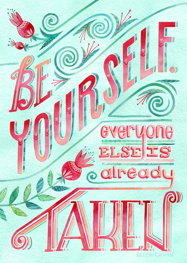 This illustrated quote was created for the Be Yourself Guided Journal with Studio Oh! that I was so honored and excited to work on. This journal gave me the opportunity to create a load of new illustrations and explore so many layout ideas in each lettering piece.