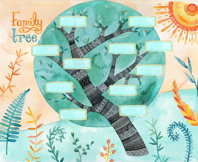 This family tree for the Be Yourself Guided Journal with Studio Oh! was so much fun to create. I tried to create my own version of a unique family tree with blanks to have flexibility in how you want to fill yours in.