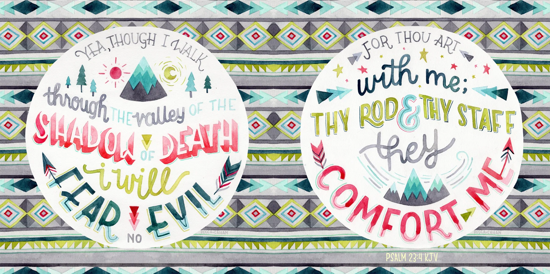 "Yeah, though I walk through the valley of the shadow of death I will fear no evil. For thou art with me; they rod and they staff they comfort me" -Psalm 23:4 KJV
