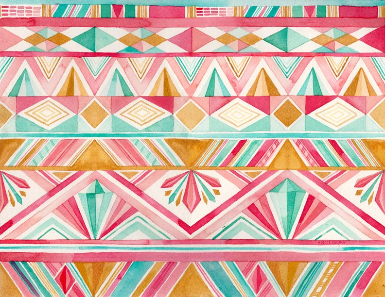 This is another pattern in my series of half-planned out, half-spontaneous pattern painting. One of my favorite meditative things to do is paint out geometric patterns and plan out how each layer will work as a repeat.